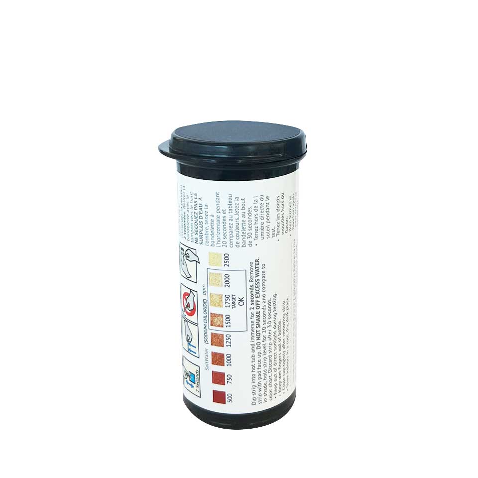 Anleitung: Einen Teststreifen 2 Sekunden ins Wasser tauchen, 20 Sekunden warten, und dann kann der Salzgehalt ganz einfach am Teststreifen abgelesen werden.